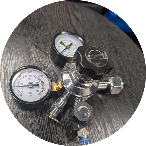 Attaches to your CO2 tank with coiled tubing to attach to your inflation gun