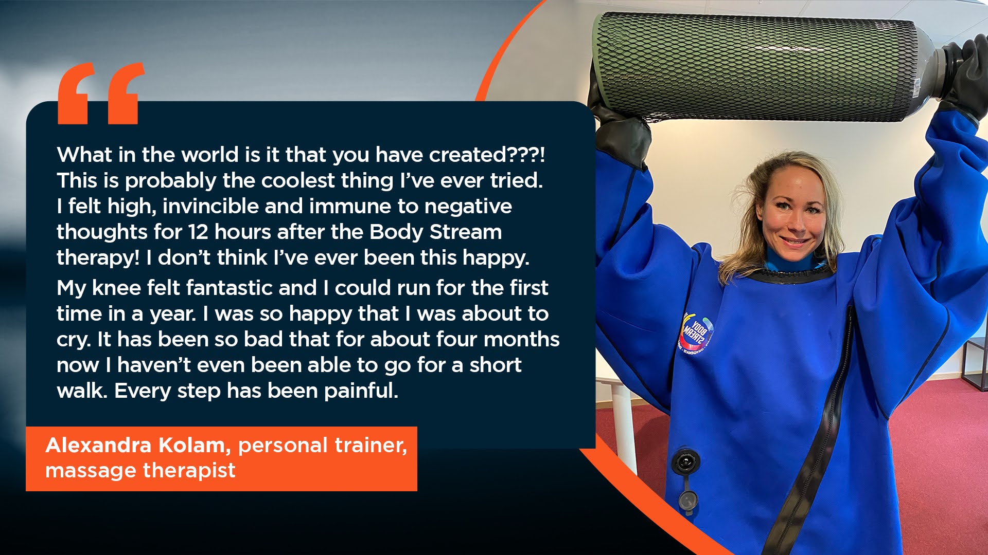 - “As a rally driver, I need an edge. BodyStream drops my heart rate and heals me fast—I’m unstoppable.” – Anders, 35